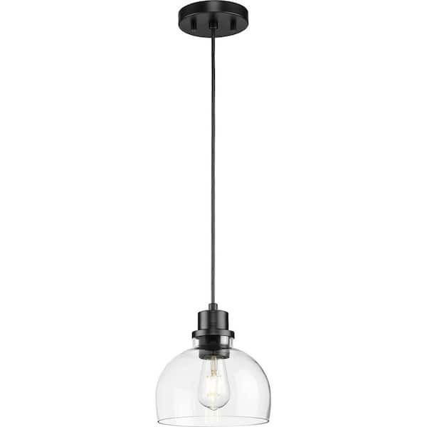 Garris Collection 1-Light Globe Matte Black Clear Glass Transitional Mini-Pendant