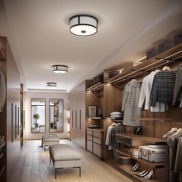 Gilliam 12-5/8 in. 2-Light Matte Black Flush Mount with Etched Opal Glass Shade