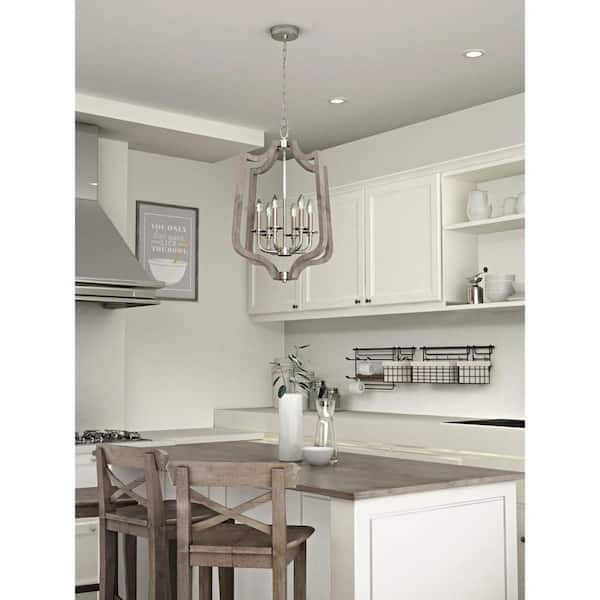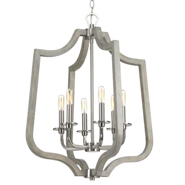 Glenora Collection 6-Light Brushed Nickel Pendant with Weathered Gray Wood Accents
