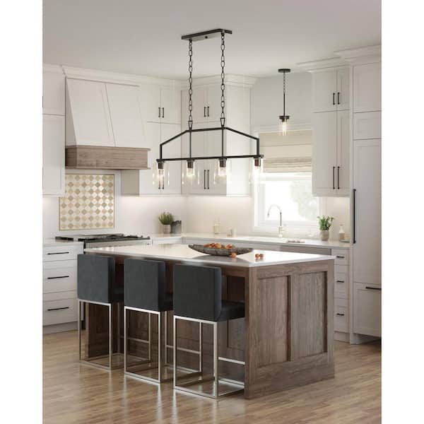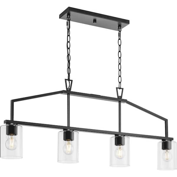 Goodwin 40-3/4 in. 4-Light Matte Black Modern Farmhouse Island Chandelier Light with Clear Glass Shade