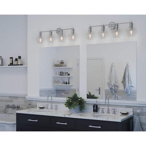 Hansford Collection 33-1/2 in. 4-Light Polished Nickel Clear Glass Coastal Bathroom Vanity Light