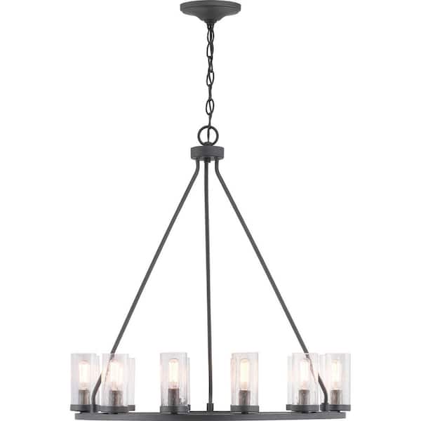 Hartwell 26-3/4 in. 10-Light Graphite Farmhouse Round Wagon Wheel Chandelier with Clear Glass Shades