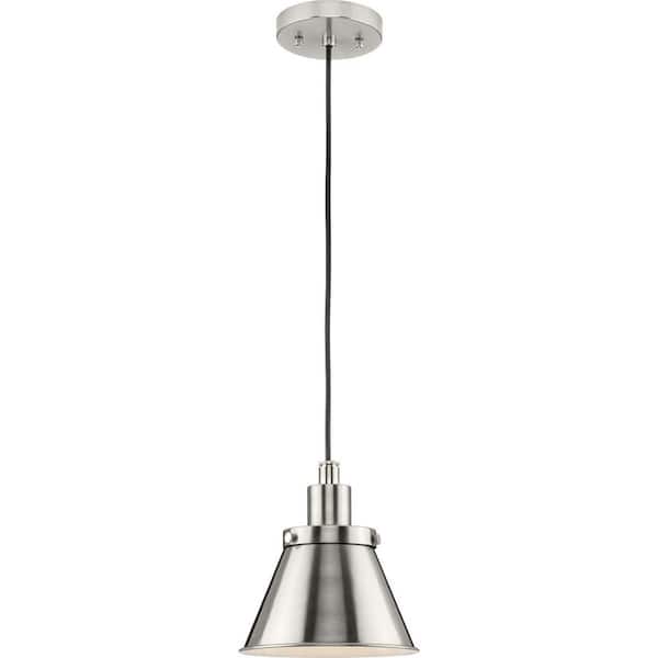 Hinton Collection 8-1/4 in. 1-Light Brushed Nickel Pendant with Metal Shade