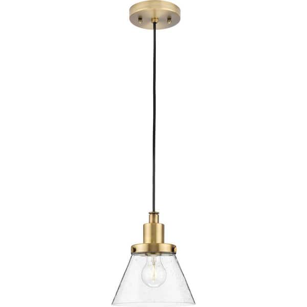 Hinton Collection 8 in. One-Light Brushed Nickel Pendant with Clear Seeded Glass Shade