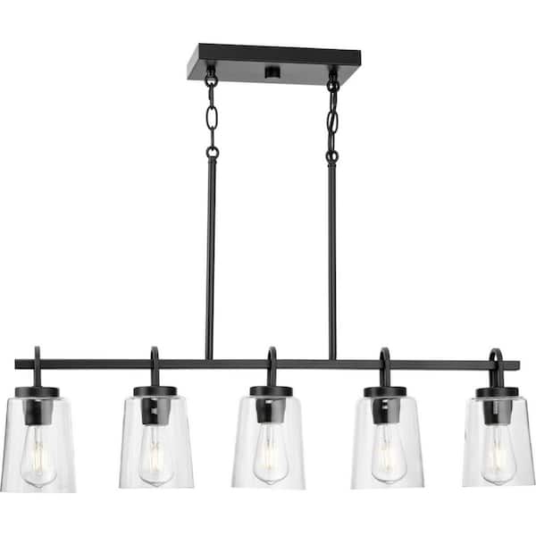 Huntscroft Collection 34 in. 5-Light Matte Black Island Linear Chandelier for Bar, Kitchen and Dining Room