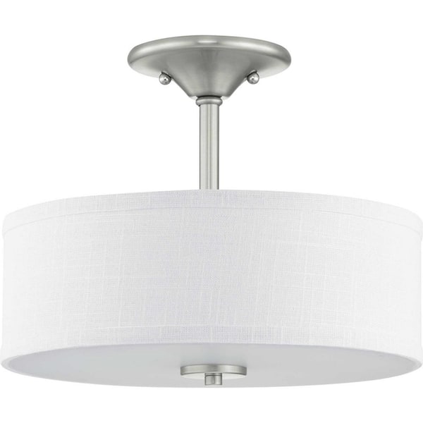 Inspire Collection 13" Two-Light Brushed Nickel Semi-Flush Summer Linen Drum Shade