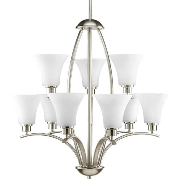 Joy Collection 9-Light Brushed Nickel Etched White Inside Glass Traditional Chandelier Light
