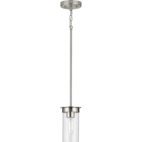 Kellwyn 1-Light Brushed Nickel Clear Glass Transitional Mini-Pendant Hanging Light