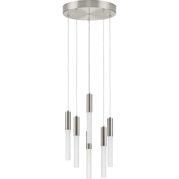 Kylo LED Collection 6-Light Brushed Nickel Frosted Glass LED Modern Pendant Hanging Light