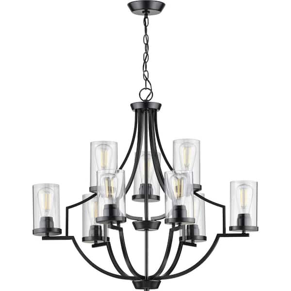 Lassiter Collection 9-Light Matte Black Clear Glass Modern Chandelier Light