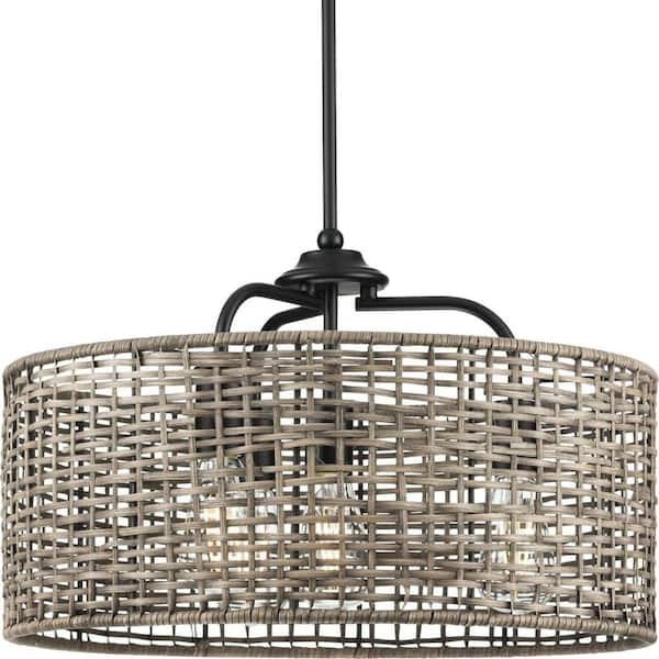 Lavelle Collection 20-1/2 in. 4-Light Natural Rattan Textured Black Global Pendant Kitchen Light