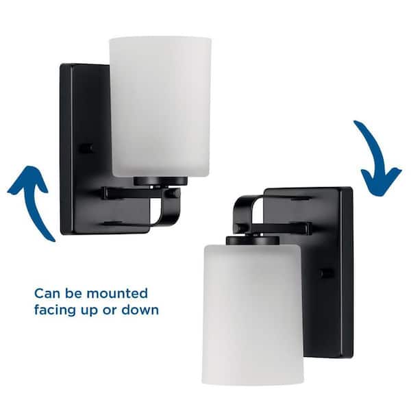 League Collection 1-Light Matte Black Etched Glass Modern Farmhouse Bath Vanity Light