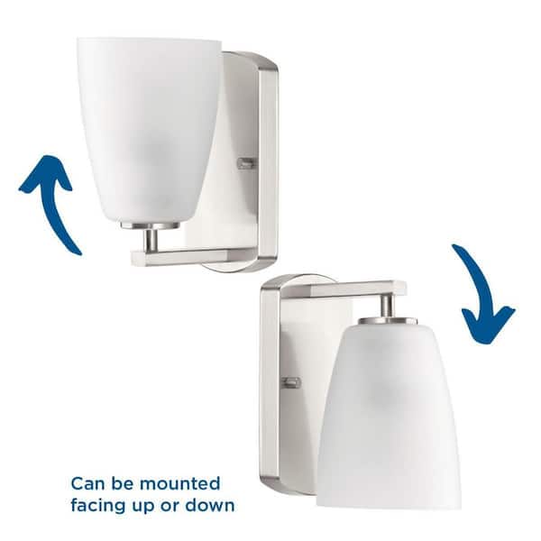 Leap Collection 1-Light Brushed Nickel Etched Glass Modern Bath Vanity Light
