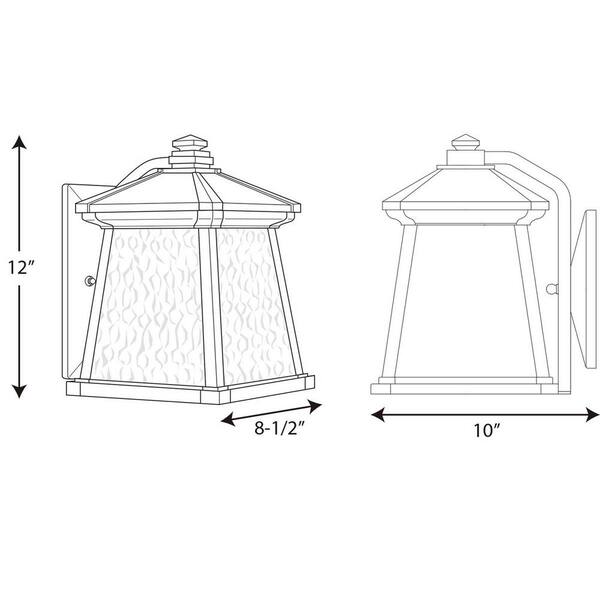 Mac Collection 1-Light Textured Black Water Patterned Glass Craftsman Outdoor Medium Wall Lantern Light