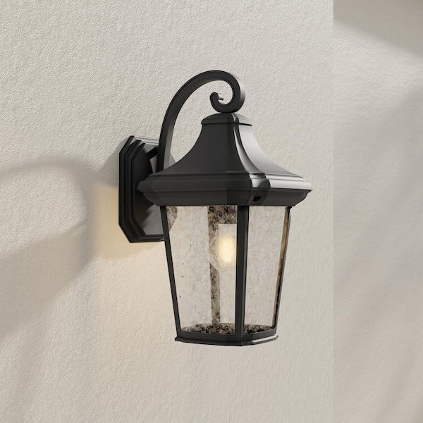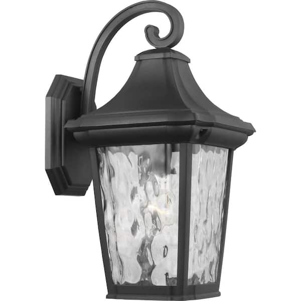 Marquette Collection 1-Light Textured Black Clear Water Glass New Traditional Outdoor Medium Wall Lantern Light