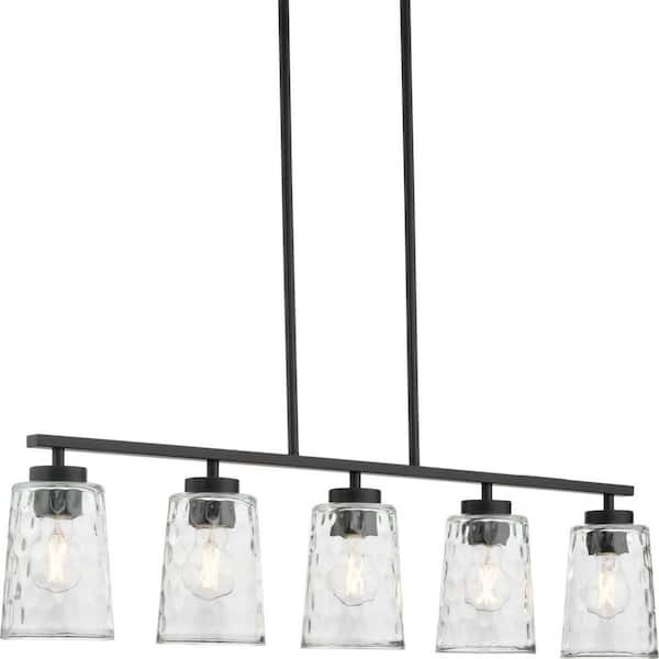 Mauzy Collection 5-Light Matte Black Transitional Linear Chandelier with Clear Water Glass Shade for Dining Room