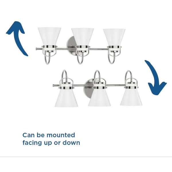 McClimon 22.12 in. 3-Light Brushed Nickel Luxe Vanity Light for Bathroom Mirror with Etched Opal Glass Shades