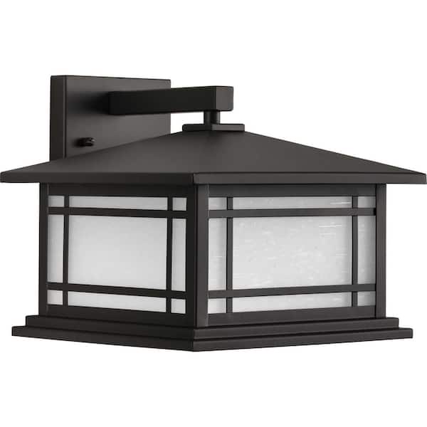 Oakcliff Collection 1-Light Antique Bronze Etched Seeded Glass Craftsman Outdoor Large Wall Lantern Light