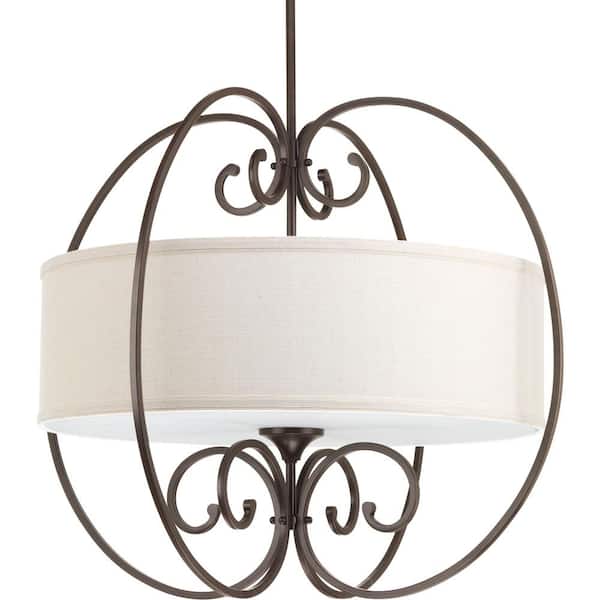 Overbrook Collection 4-Light Antique Bronze Large Pendant with Natural Linen Shade