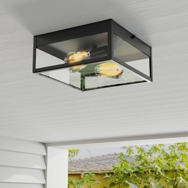 Parrish 2-Light Matte Black Clear and Etched Glass Modern Craftsman Outdoor Flush Mount