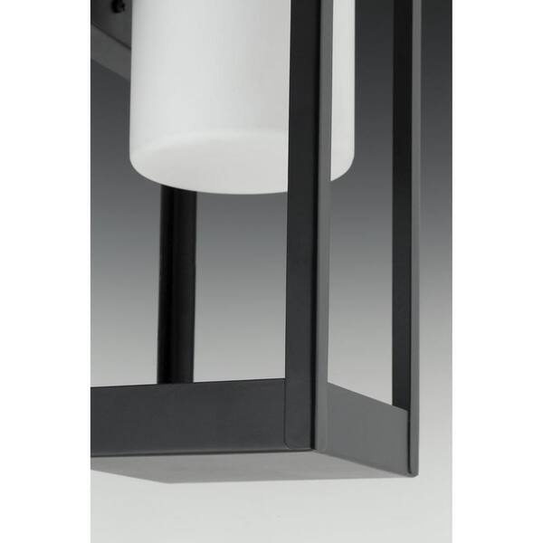 Patewood Collection 1-Light Matte Black Etched Opal Glass Farmhouse Outdoor Post Lantern Light