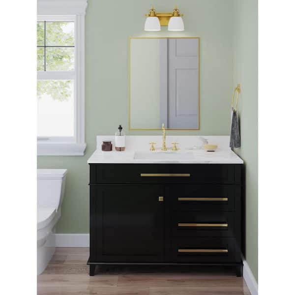 Preston 14 in. 2-Light Vintage Brass Vanity Light with Etched Opal Glass Shades