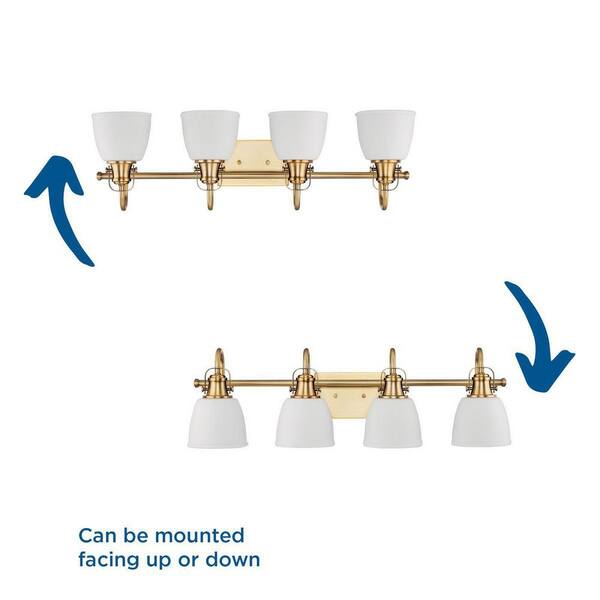 Preston 30.5 in. 4-Light Vintage Brass Vanity Light with Etched Opal Glass Shades