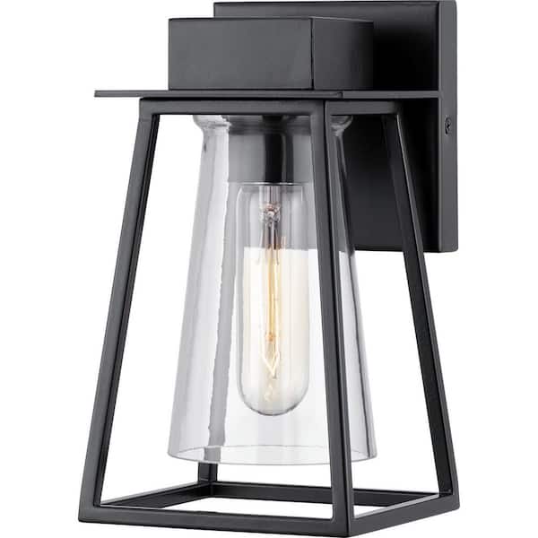 Raineville 1-Light 9 in. Matte Black Outdoor Wall Lantern with Clear Glass