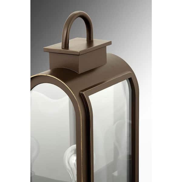 Refuge Collection 1-Light Oil Rubbed Bronze Clear/Etched Umber Glass Farmhouse Outdoor Small Wall Lantern Light