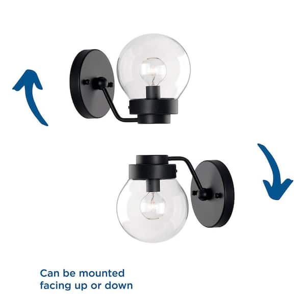 Spatial Collection 1-Light Matte Black Clear Glass Global Bath Vanity Light