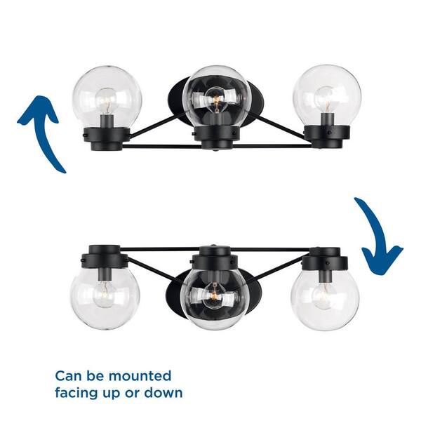 Spatial Collection 3-Light Matte Black Clear Glass Global Bath Vanity Light