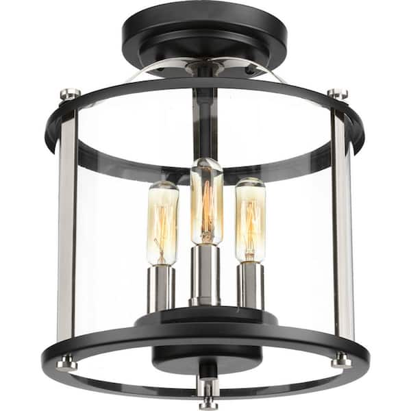Squire Collection 3-Light Matte Black Clear Glass New Traditional Outdoor Hanging Lantern Light