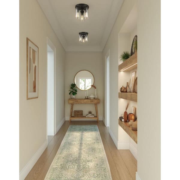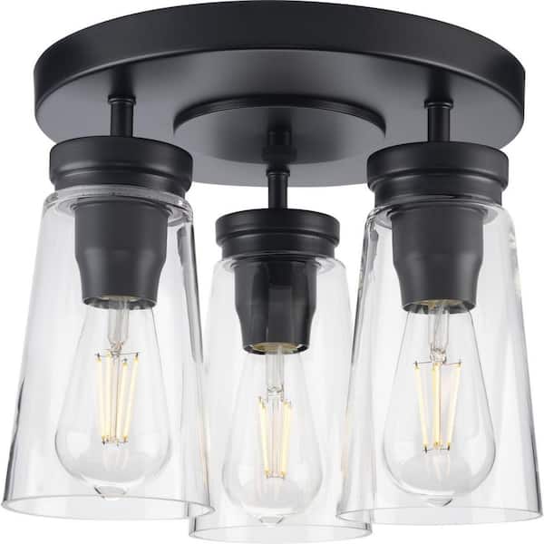 Stockbrace 3-Light Matte Black Clear Glass Farmhouse Flush Mount Ceiling Light
