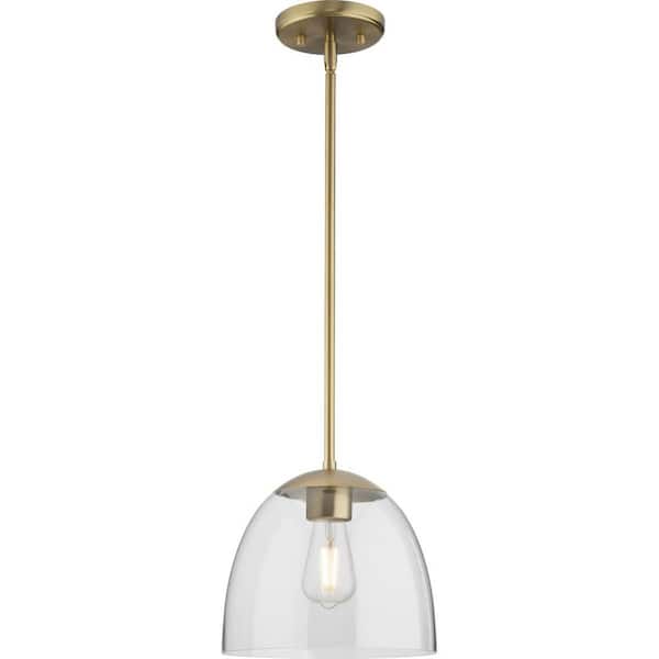 Tamassee Collection 1-Light Brushed Gold Updated Traditional Mini Pendant with Clear Glass Shade for Kitchen