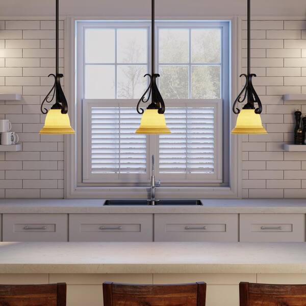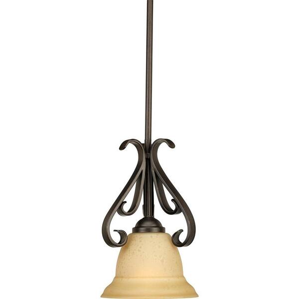 Torino 1-Light Forged Bronze Kitchen Island Mini Pendant with Tea-Stained Glass
