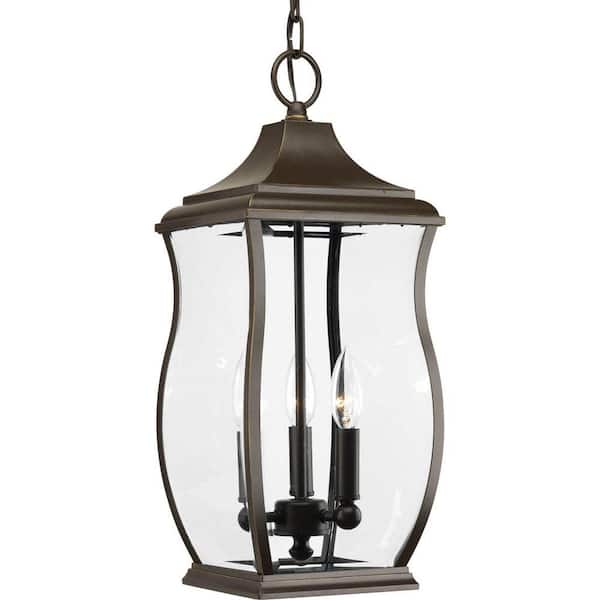 Township Collection 3-Light Oil Rubbed Bronze Clear Beveled Glass New Traditional Outdoor Hanging Lantern Light