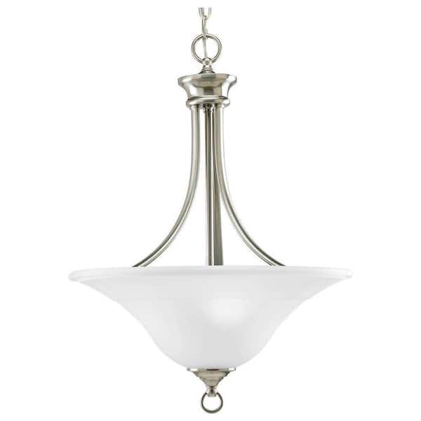 Trinity 3-Light Brushed Nickel Foyer Pendant with Etched Glass
