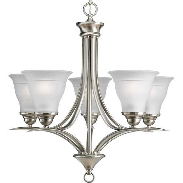 Trinity Collection 5-Light Brushed Nickel Etched Glass Traditional Chandelier Light