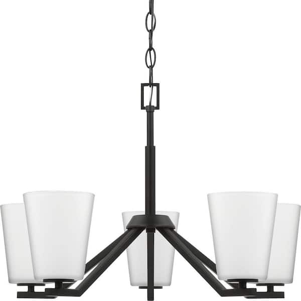 Vertex Collection 5-Light Matte Black Etched White Contemporary Chandelier
