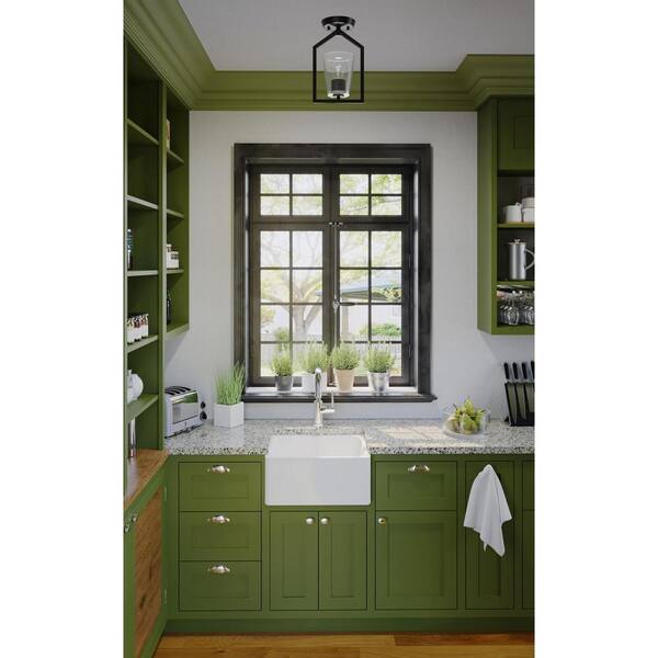 Vertex Collection 7.37 in. One-Light Matte Black Clear Glass Contemporary Semi-Flush Mount with