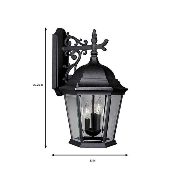 Welbourne Collection 3-Light Textured Black Clear Beveled Glass Traditional Outdoor Large Wall Lantern Light