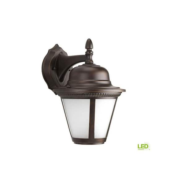 Westport LED Collection 1-Light Antique Bronze Etched Seeded Glass Traditional Outdoor Medium Wall Lantern Light