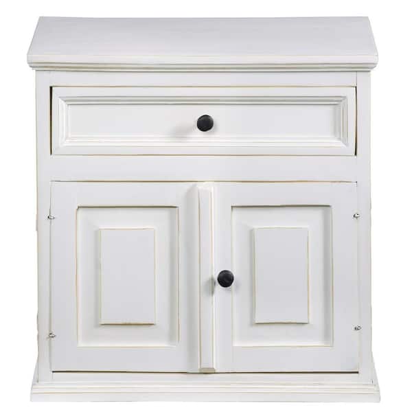 Carli 1-Drawer Vintage White Nightstand