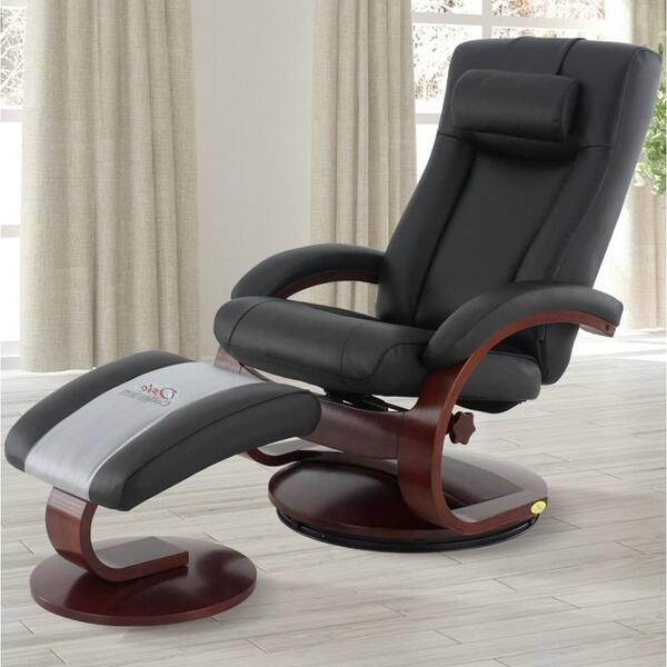 Relax-R Hamilton Recliner and Ottoman with Pillow in Black Top Grain Leather