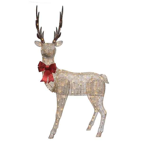 86 in. H Cotton Spun String Standing Elk, 160 Piece Warm White Twinkling LED's, Including 26 Twinkling Bulbs