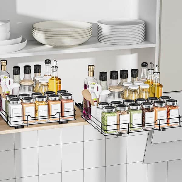 Pull Out Spice Rack Organizer for Cabinet, Seasoning Storage Solution, Fits Spices, Sauces, Canned Food, Rust Finish