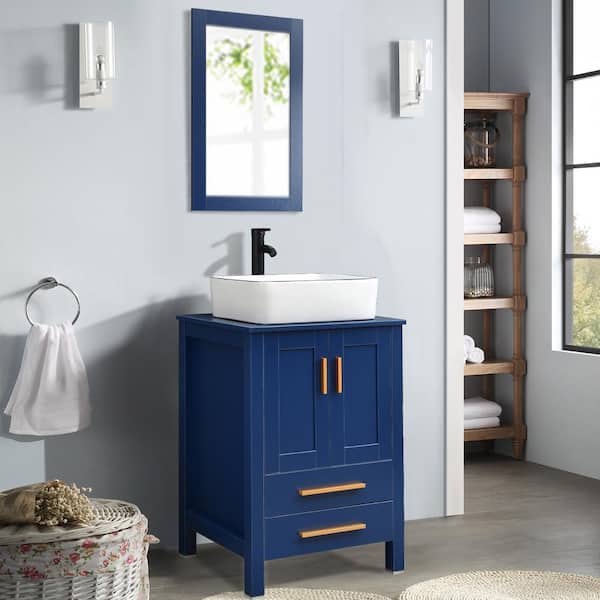 24 in. W x 19 in. D x 32 in. H Bath Vanity in Blue with Solid Surface Top in Blue