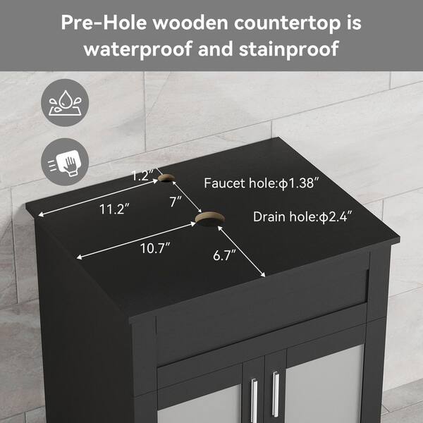 • Includes vanity, mirror, sink, faucet, pop-up drain set, hardware