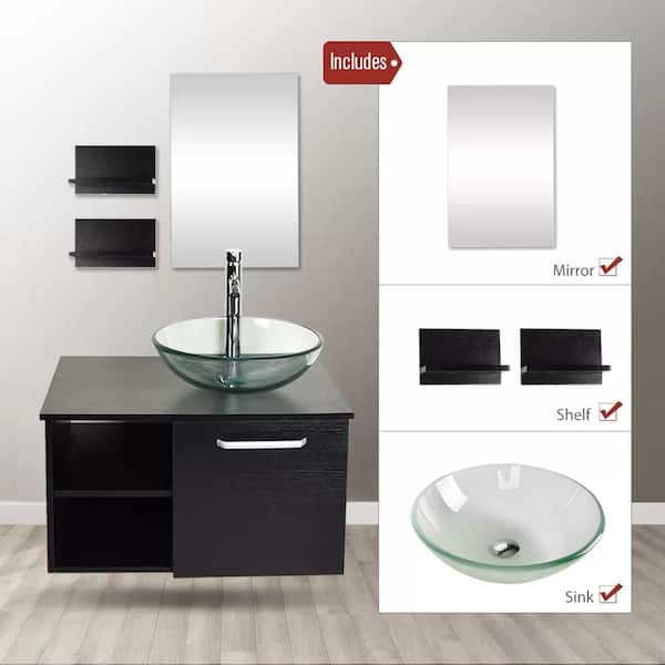 24 in. W x 20 in. D x 32 in. H Single Sink Gray Bath Vanity with Blue Solid Surface Top Sink and Mirror