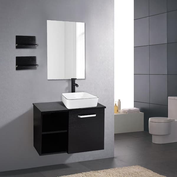 28 in. W x 19 in. D x 16 in. H Single Sink Black Bath Vanity with White Rectangular Solid Surface Top Sink and Mirror